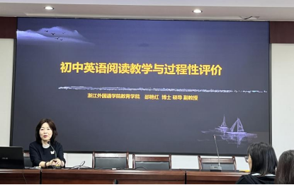来自浙江外国语学院的邵艳红博士带来了题为《初中英语阅读教学与过程性评价》的专题讲座。邵博士旁征博引,深入剖析了整书阅读课堂教学活动的落实及其教学策略,同时紧密结合新课标和中考进行了详细阐述。