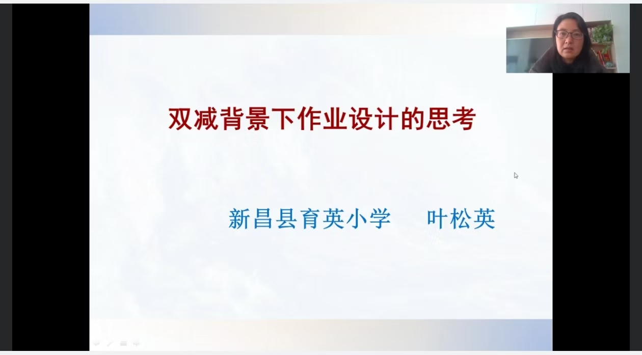 12月15日,绍兴市新昌县育英小学正高级教师叶松英老师分享了《“双减”背景下小学语文作业设计的思考》专题讲座,她首先检视了当前作业现状,梳理了在我国中小学教学实践中普遍存在的三种不同作业观,虽呈现地域分布和城乡文化差异,但是传统作业观仍然占主导地位,然后对作业的内在特征作了分析,最后以他们的绍兴市优秀推广成果为实例,分享了以“有效发展”为终极价值取向的作业价值观,强调了作业有价值,作业有效果,作业有效率,作业有魅力四个方面发挥作业更好的功能,达成减负作业的总体成效。