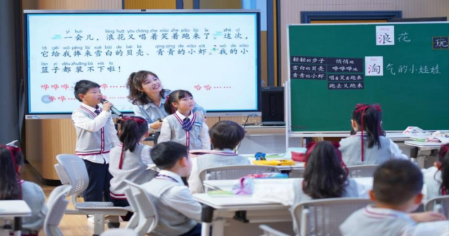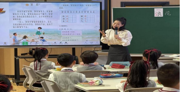 温州大学附属茶山实验小学的陈瑞睿老师带来了一年级下册《浪花》第一课时的课例展示。陈老师通过借助做动作、组词熟字加偏旁、利用图片、结合生活经验、形声字归类、同偏旁归类等多种随文识字方法,激发孩子们的识字热情和兴趣。陈老师坚持“以读促学”,通过自主练读、教师范读、个人展示读、做动作读等多种形式的朗读,培养孩子们的阅读能力和鉴赏能力,孩子们的朗读水平呈梯度上升。