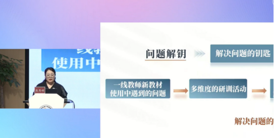 衢州市龙游县教育局教研室张秀峰带来《问题解钥:“一站式”推进一年级语文新教材使用的县域新路径》的经验交流。新教材修订后,部分课文交替和结构调整给教师教学带来挑战。“一站式” 推进新教材使用的探索,为县域内一年级语文教学开辟了新路径,助力新教材在课堂上高效落地。