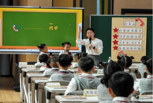 下午,嘉兴平湖市实验小学沈恬老师带领一年级的孩子学习口语交际《打电话》。沈恬老师通过通俗易懂的讲解,详细地向孩子们介绍了拨通电话后要先问声好、报名报,讲事情,讲清楚等要点。随后,“实战演练” 环节将课堂氛围推向高潮。孩子们两两一组,手持电话,有模有样地打起电话来。在轻松愉快的课堂氛围中,孩子们不仅学会了如何正确、礼貌地打电话,口语表达能力也得到了锻炼和提升。