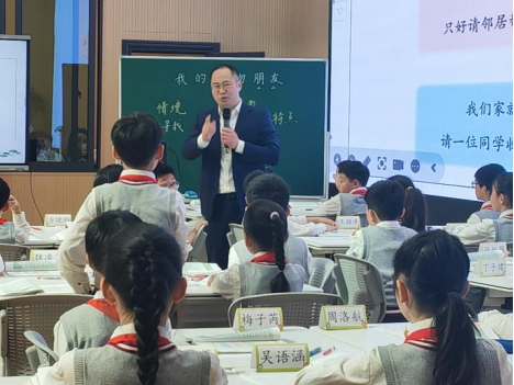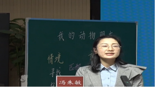 随后展示的是绍兴市上虞区华维文澜小学丁群根老师,他请学生聊一聊家里养的小动物,迅速吸引了学生们的注意力,激发了他们的学习兴趣。接着,老师利用教材资源引导学生根据情境需求,选择合适的内容介绍自己的动物朋友。在写作指导环节,老师借助“表达支架”,展开修改,进一步写出动物朋友的特点,表达对动物的喜爱之情。