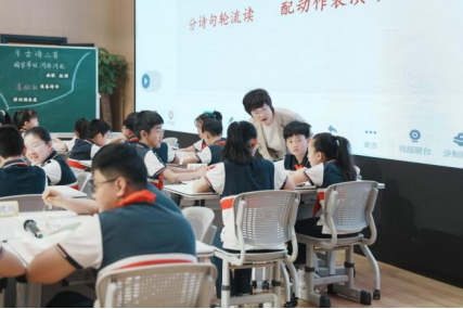3月26日上午,研训活动在温州绿轴小学《声动中国》朗诵节目中拉开帷幕。开幕式由浙江省小学语文教研员余琴主持。温州市未来教育集团校长季迅群致欢迎辞,向代表们介绍了“我们与未来只差一个你”的办学理念,以“人人小先生”变革为落脚点,积极探索“未来教育”的发展之路,以及本校语文教学教研发展的新动态。温州市瓯海区教育局李玉宇主任介绍了瓯海区在新课标引领下取得的教学研究成绩。