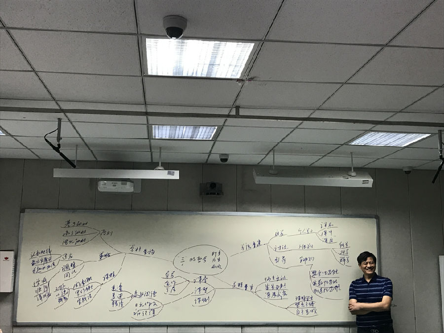 王老师强调,教读课是注重能力过程的教学,而自读课注重能力的落实与运用。作业本如何使用、合作讨论强求哪些技术、小组展示的关键技术在于何处,这些问题都十分考验教师的智慧。技术的强求背后是科学,是一定的规范,是有据可循。如,合作讨论的技术:①小组长明确任务;②请组员按次序汇报自学成果;③小组长提醒后一位不重复前者发言;④小组长明确小组内有几种意见,并明确下一步集中讨论的一个意见⑤小组长组织完善小组意见⑥小组讨论用何种方式展示小组成果。随后,王老师集中于大家分享自己语文教学研究中的智慧成果:“三”的哲学(三即多、三为生、三而成),这主要有“学材重构”“学法重建”“学程重生”三部分构成。“任何孩子的任何能力都是在他的实践过程中提高的”“教的活动在聆听,学的活动在表达”……理论之余,王老师融进自己许多具体的教学案例与方法,王氏语录更是让我们记忆犹新,受用不已。