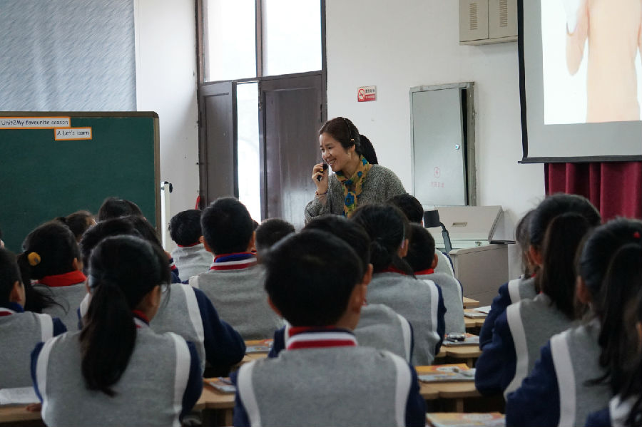 活动分研讨课例展示与专题讲座两大环节。上午活动集中在研讨课例的展示,首先开课的是永嘉县教研室英语教研员孙真慧老师。她带给大家的是词汇课 PEP 6 Unit2 A Learn,孙老师亲切大方的教态,精巧的学习活动设计以及孩子们自然高效的课堂给在场老师们留下了深刻的印象。尤为称道的是孙老师把散落在本单元的各个课时,各个角落的图片资源巧妙的串联起来,从而创设一个四个孩子不同季节景色及活动的整体语境,让学生整体感知,整体输入,然后一步步落实新词的音形义。
