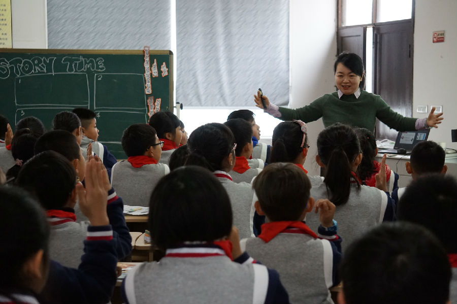 第三节课是鹿城区教研室英语教研员张璐老师带给孩子们的故事课 PEP 5 Unit3 Recycle。张老师板书漂亮、口语流畅、课堂灵动、氛围融洽。本节课更多的体现了张老师对学生思维品质的培养,从一开始的思维导图就非常吸引眼球,打开了学生的发散性思维,有效滚动了旧知。开放性问题的设计,激发学生发言的欲望,且课堂留给孩子大量的思考与交流空间,培养了学生的思维能力。