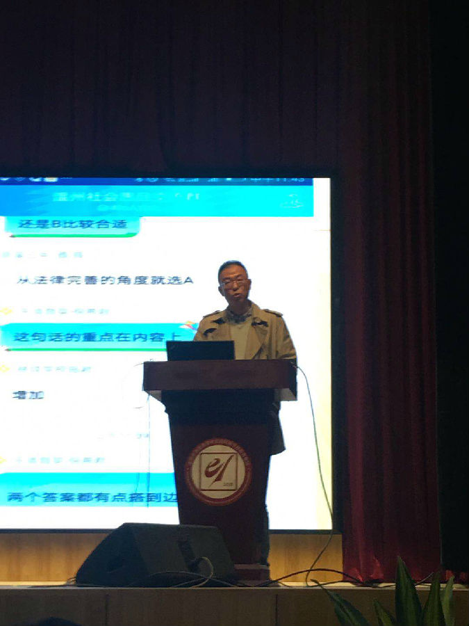 李冰老师则作了题为《精读导引 丰实材料 有效复习》的专题讲座。李老师从教材的变化、考试条目的变化与命题的变化说开去,紧扣变化主题,引导广大教师关注素材本身,吃透教材才是精准有效教学的第一步。围绕着诸多变化,李老师有为我们应对变化提供了有效的策略指引,即“精读《导引》”、“丰实材料”、“细改题目”,策略精准有效,帮助准确到位。市道德与法治学科教研员侯定伟老师兴之所至,紧接李冰老师话题为大家做了复习策略的补充说明。