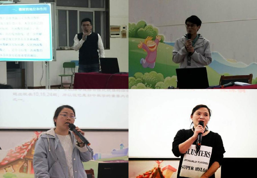 最后上场的是蓝晓君名师工作室成员,来自东道主新城初中的江美青老师,她对《分式的加减复习(1)》进行说课。江老师语言自然生动,她准确的分析教材的编写意图,围绕教学目标,抓住重点,层层铺开。