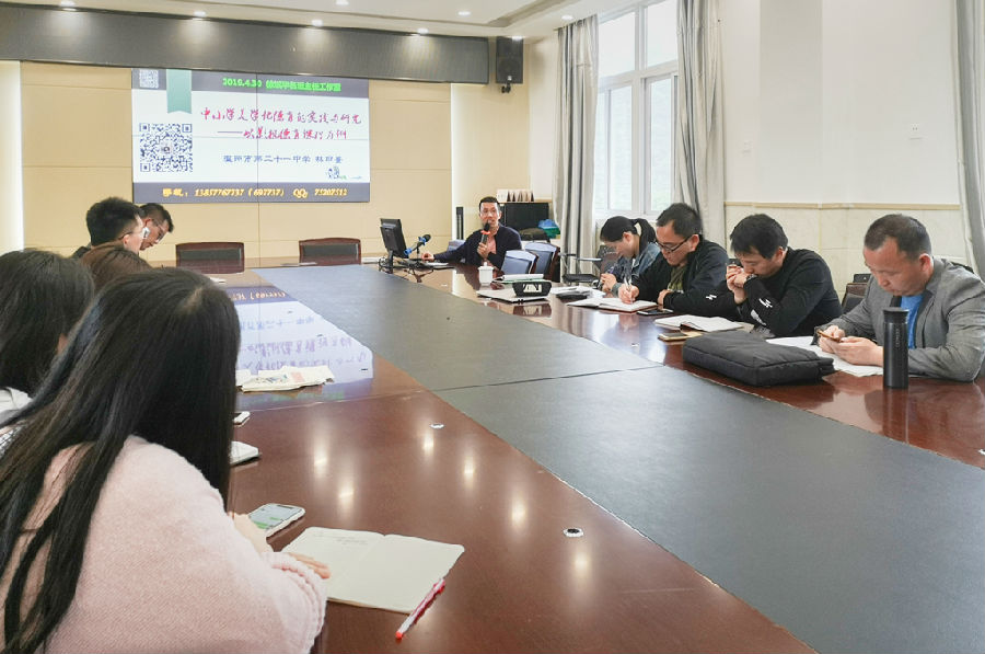 徐斌华名班主任工作室的所有成员齐聚在瓯海区温大附中,参加第八次名师工作室活动。来自21中的德育副校长林甲景老师为我们带来了《中小学美学化德育的研究与实践——以电影德育课程为例》的讲座。该讲座是林老师10余年电影德育选修课实践中不断思索的总结,也是林老师以电影为载体进行德育课程建设的成果结晶。短短两个小时的讲座过程,林老师从课程的教学目标,设计流程,课程特点等三个方面进行了详细阐述,试图让我们在短短的两个小时内对课程的全貌有个整体宏观的把握。林老师的讲座内容丰富,图片和文字并举,既有电影片段的现场举例分享,也有精当意赅的理论提升。我们在坐的所有成员无不对林老师精彩的电影解读和清晰的课程建设赞叹有加。
