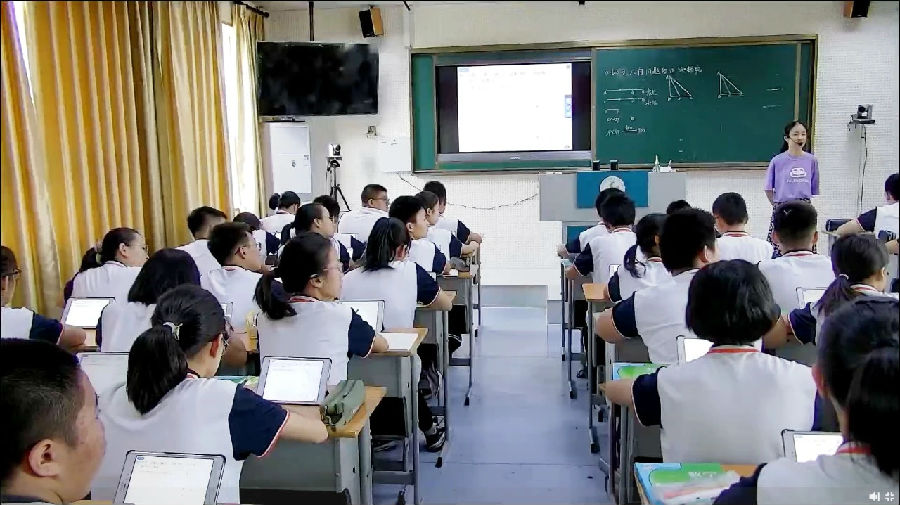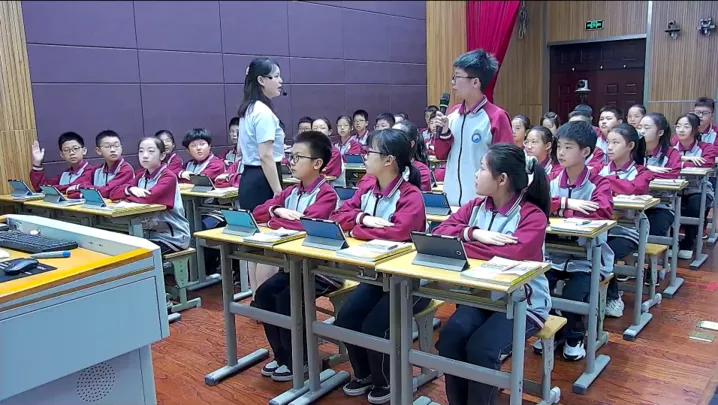 第二堂课由萧山区高桥金帆实验学校王佳老师带来《有理数的乘方》。王老师以学生已有的知识背景出发,进一步让同学讨论、归纳、总结,从而让同学自己总结出有理数乘方的概念。在课堂接近尾声,王老师通过一道课后检测题,快速了解并统计了学生对于新课内容的掌握程度,方便课后分层布置作业,实现因材施教。