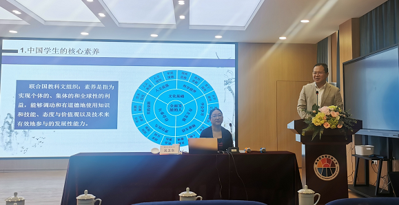 中国学生核心素养的目标是全面发展的人。吴教授分别从文化基础、自主发展、社会参与三个维度为老师们进行了深入剖析。文化基础包含人文底蕴与科学精神两个要素。在解读文化基础中的人文底蕴要素时,吴教授一方面旁征博引中国古代多种经典,深入发掘其中多重教育价值,建议老师们通过阅读经典以增加人文积淀;一方面结合生动有趣的实例,告诉老师们以行动和细节体现尊重、以欣赏的眼光看待学生,重视审美在未来教育中的重要地位,让学生拥有十足的人文情怀和高雅的审美情趣。科学精神要素又分成理性思维、批判质疑、勇于探究三个方面。吴教授以台湾数学课堂教学理念为例,对“理性思维”做了重点解读,告诉大家教会思考比教会答案更重要,强调了当下教学中培养学生理性思考习惯的必要性与重要性。