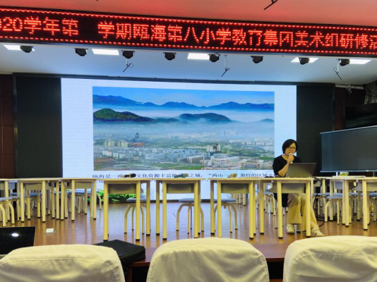 最后,林晓洁老师在《追根溯源 传承人文》这一讲座中以学校的校本课程“瓯之艺”为例,分享了如何从瓯越文化中寻找美术相关的且能被当下的学生接受的元素并逐步形成课程的过程。林老师提醒我们,不要忽视零星的想法,做一点再做一点,选取有价值的素材整理,从问题找主题变课题,最终整理成课程;也建议我们行动起来,做一个自己的具有自己学校特色的校本课程。
