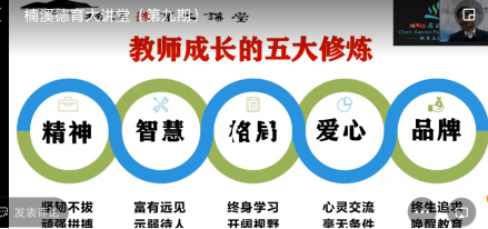 随后的专家讲座来自楠溪德育大讲堂创始人之一、浙江省特级教师、浙江省正高级教师、全国优秀班主任的陈建仁老师。陈老师从自身经历出发,用他自己职业生涯中的一个个鲜活典型的例子,书写出教师成长的五大修炼宝典。
