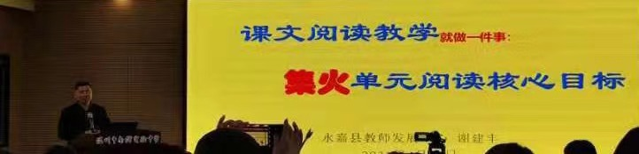 永嘉县教师发展中心教研员谢建丰老师做了题为《语文阅读教学就做一件事:集火单元阅读核心目标》的讲座。谢老师认为教学要关注单元目标,进行目标整合,集火单元目标。以多个单元的课文为例,阐述在教学的过程中,如何把握单元最核心的阅读目标。谢老师认为,学生要通过运用已学的阅读方法、策略,自主阅读新的课文。