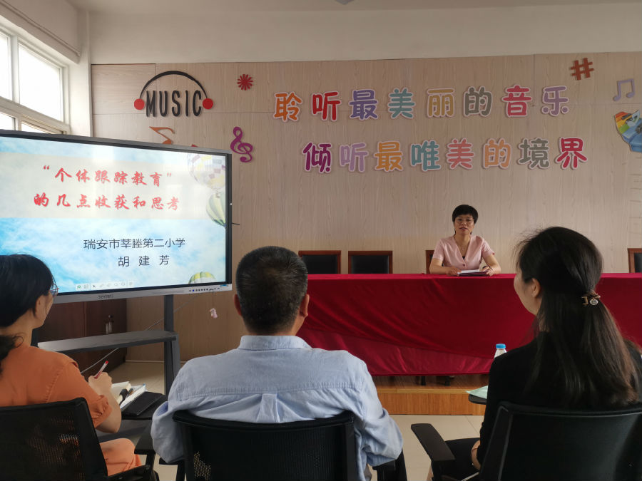 活动在学员们的读书摘记分享中拉开帷幕,他们分别就目前在看的《面向个体的教育》进行了交流,现场气氛活跃。而后,胡校长给大家带来了《“个体跟踪教育”的几点收获和思考》的讲座,她对两个“问题学生”进行了长达五年的跟踪教育,通过访谈、沙盘游戏、调查等方法观察并研究学生的心理特征,制定了有针对性的指导方案,从而帮助其转化,使他们各方面都有了很大的进步。胡校长的讲座接地气有实效,让我们重拾教育的“初心”,更明确了真正的教育是为学生的一生着想,更耐心地去静待花开,守望未来。