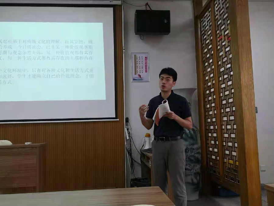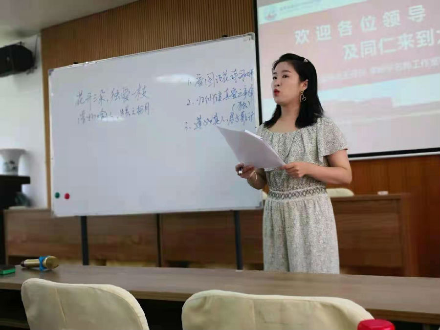 八点钟,活动准时开始。王在恩老师进行了简单的开场白。他强调:说课应该成为一种常态。老师应该从日常生活中寻一方心灵的栖息地。在喧嚣的世界里安妥自己的心灵。而说课是老师必备的一种看家本领。因此,老师要常常锤炼这种能力。接着,是两个工作室五位老师进行说课。他们是:周仕海、张雅、陈洁琼、孙杰、汪燕。五位老师选择的课文有文言文、说明文和文学作品。他们从不同方面展示了青年老师说课的能力。