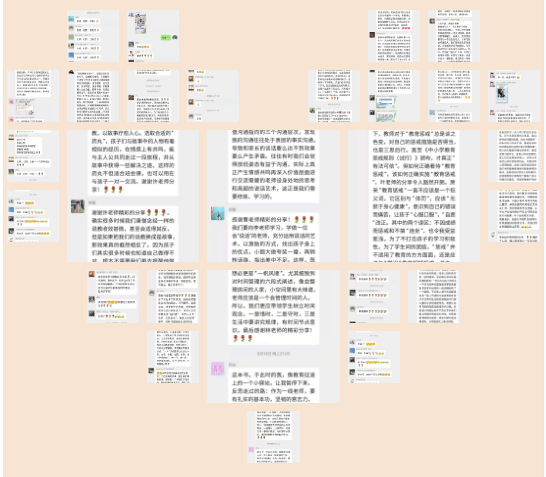 每一场分享结束后,在线倾听的学员们及时就自己的所思所得发表感言、心得,群里的阅读交流开展得如火如荼,好不热闹。
