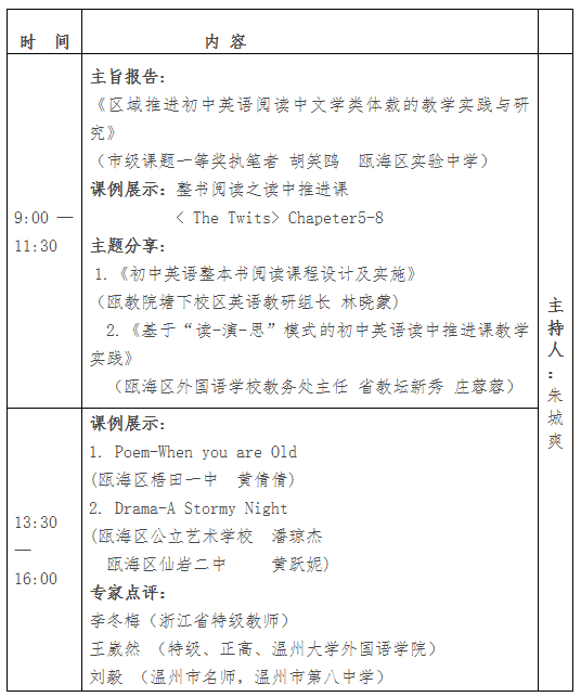 为探索初中英语学科核心素养的培育途径,提高初中英语教师课堂教学水平,发挥名师的辐射效应,工作室全体成员参加“罗山·塘河缘”教育高峰论坛暨第九届瓯海教育课改论坛初中英语线上录播活动。现将有关事项通知如下: