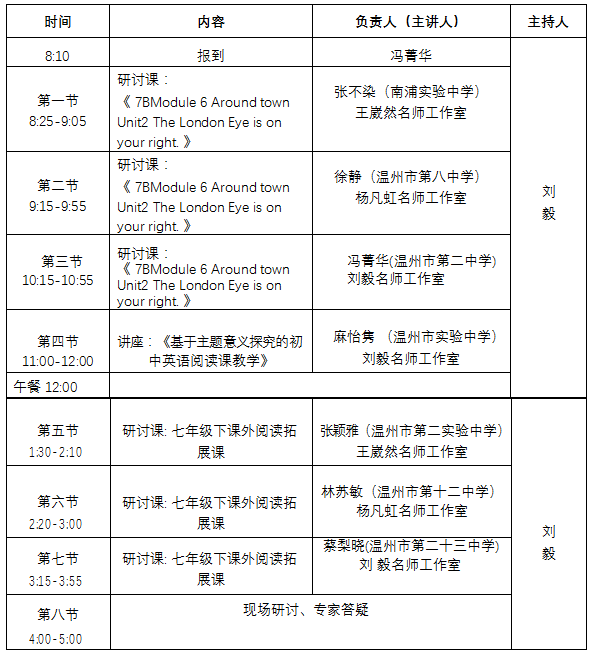 为了促进初中英语教师的专业成长和素养提升,探索初中英语阅读课的有效教学途径,发挥名师的辐射效应,温州市杨凡虹名师工作室联合鹿城区王崴然工作室和刘毅名师工作室举行以“基于主题意义探究的初中英语阅读课教学”为主题的研讨活动。