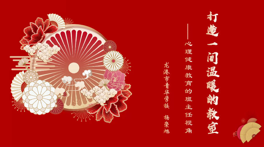 讲座中,叶老师还结合中途接班的经历,与大家分享了打造好班集体过程中做法。如果说带好上一届的秘诀是养成好习惯,那么带好(5)班的秘诀就是用“心”!叶老师分享了六“心”。一、以小组“核”心。全班一开始一盘散沙,但绝不可能一下子聚沙成塔,所以先用心打造好小组,激发归属感、认同感和责任感!二、以环境“熏”心。她认为教室的布置应以学生为主体、体现“我”和“我们”、具有“独特性”、内容促使人奋发向上、布局简单大方。而她分享孩子专属的“梦想气球”、“点赞卡”、“青春语录”等都令人印象深刻。三、以真诚“交”心。 “懂学生比爱学生更重要。要走进学生的心灵,就要找寻学生认同且能接受的教育方式。”只有真诚才能赢得真诚!四、以班会以真诚“动”心。用心备好、上好每一节班会课,让孩子真正受益。五、以仪式“暖”心。仪式感,会让你在平凡又琐碎的日子里,找到诗意的生活,找到继续前进的微光。”有仪式感,才更有幸福感。六、以活动“聚”心。以丰富的活动为载体,找到很好的契机,真正将全班同学的凝聚在一起,真正打造了不一样的“吾”班,是“潜力吾班”,也是“幸运吾班”!第二场是由龙港市青华学校杨崇旭老师带来的讲座《打造一间温暖的教室》。杨老师从学生典型心理问题切入,以学生心理问题引发的蝴蝶效应为实例,展现了班主任工作中应对学生心理问题的普遍性和两难。他还结合学生危机的统计数据和热门话题,为各位老师们打开了一个聆听学生倾诉的世界,提出了孩子的内心需要被呵护的观点。