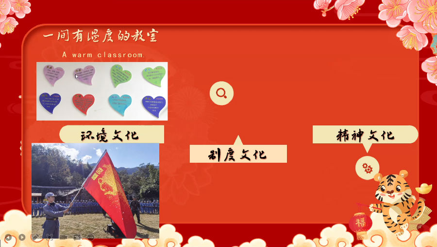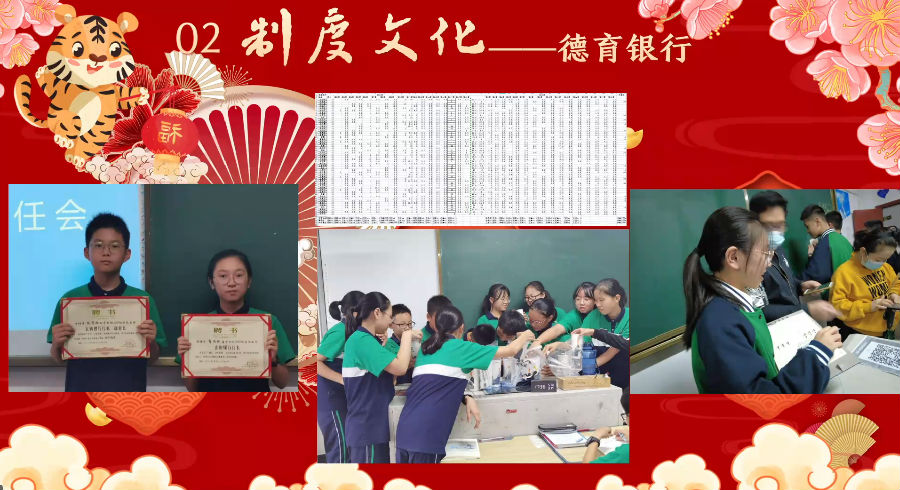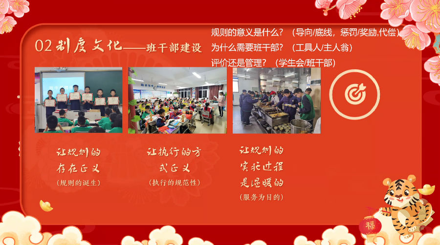 随后,杨老师还从学生问题提炼出带班理念——辟一方沃土,让班级成为学生成长的精神家园。杨老师以“织一件狄德罗睡袍,让美好在这里发生”为核心,展示了他的带班规划并详细介绍了他在带班过程中践行教育理念的途径。杨老师从以打造一间有温度的教室为目标,规划班级环境文化。再到对班规、班干部角色、班级管理理念的思考,师生共谋,打造班级特色制度文化。再到欢乐、良善、展示等系列活动,提炼班级精神文化。他细致地为老师们展示了《向阳花开》的班本课程,阐述了班本课程的开发思路和开展形式,并呈现了班本课程开发的喜人成效,为老师们阐述班主任应对学生心理的注意事项和班主任成长方式。