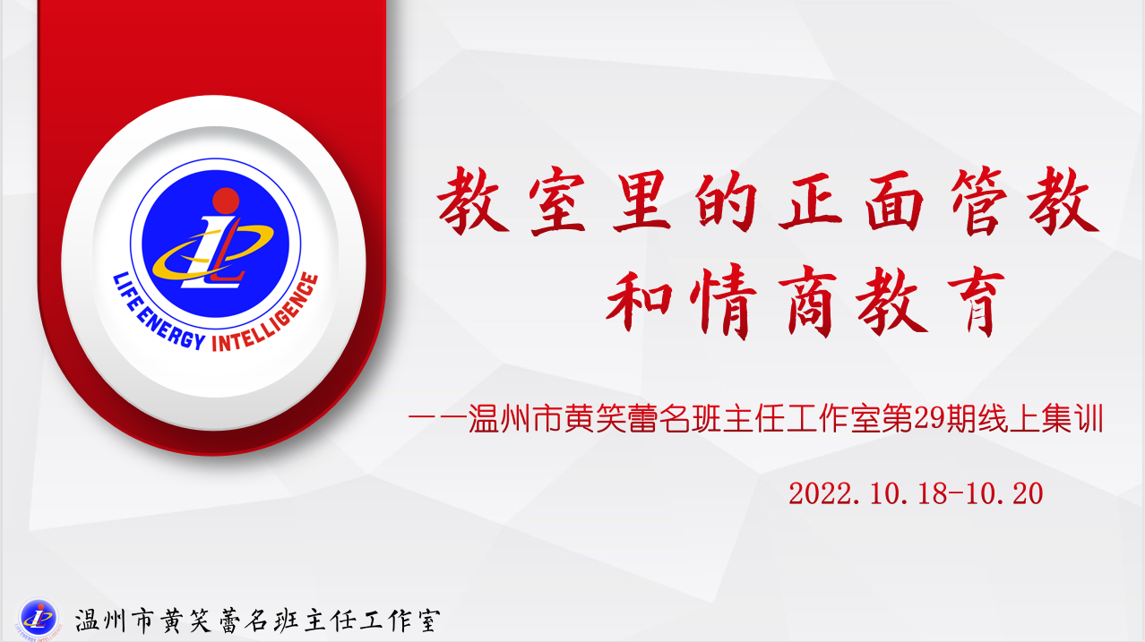 2022年10月18日-20日,我们隔着屏幕,在浙江省黄笑蕾名班主任工作室钉钉大群里,举行了温州市黄笑蕾名班主任工作室第29次集训暨瓯海区黄笑蕾名班主任红色先锋工作室活动,开启了“高情商班主任”修炼之旅。
