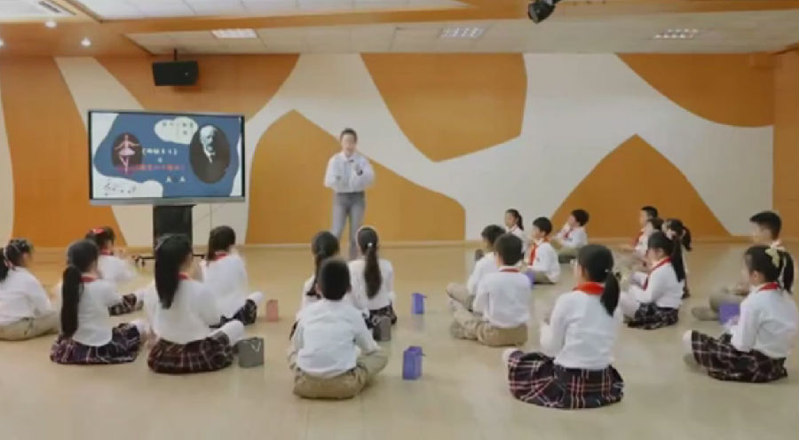 周老师以“音乐课要去体验什么?”为中心来开展。她结合“柯达伊”的音乐教学理论,阐述由于音乐的本质属性——直觉、审美、情感、实践决定了音乐课程的“体验”属性。接着周老师与我们分享格雷珍《体验音乐》在音乐要素表述上分为两块:声音四大基本属性(音高、音色、力度、长短)和音乐八大表现性要素(旋律、节奏、力度、结构、音色、曲式、风格、和声)。周老师分析了中国式音乐课一直以来的习惯重点在于要听懂、听明白,最后感受一首歌曲的情绪情感,音乐要素往往一带而过。而西方的音乐课通过音乐要素来作为媒介,学生在音乐要素实践中让音乐发生。