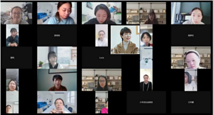 提问环节鲍丹霞老师提到“ 结合现在的新课标,从哪一块着手实施 ”,周老师讲述了她们团队对于新课标做的解读,反问老师们“思考一下,今后的课堂我们能不能多一些事给学生做,学生是喜欢自主表达的,如何引导学生自由放松表达出来!”朱彩珠老师提出对于课堂设计的疑惑,周老师解答到课堂设计的一定要结合音乐意境,音乐要素的捕捉都要紧紧抓住音乐本身。黄颖颖提出疑惑,“有没有思路帮助我们更好的解读教材,抓住音乐要素”,周老师讲解到,老师要学会借助已有的资源,它山之石可以攻玉。音乐要素是非常多的,如何找到适合的切入点,就考察到教师自身的教育理念。老师们的提问发散,有深度,都是目前在教学中遇到的疑惑,周老师给出解答,并抛出新的问题引发老师们的深思。