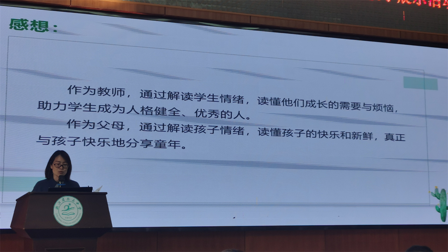 “幸福的人一生都在被童年治愈,而不幸的人一生都在治愈童年”。就“学生情绪问题”,徐晓珍老师为我们带来了《解读情绪,温暖孩子》的观点报告。徐老师用数据分析了学生情绪问题的现状和原因。进一步讲述学生情绪被忽视的危害。最后徐老师举了一个又一个生动的例子与我们分享了学生情绪的引导和管理的“五步法”,帮助学生更好的独立去应对生活与学习中的压力。