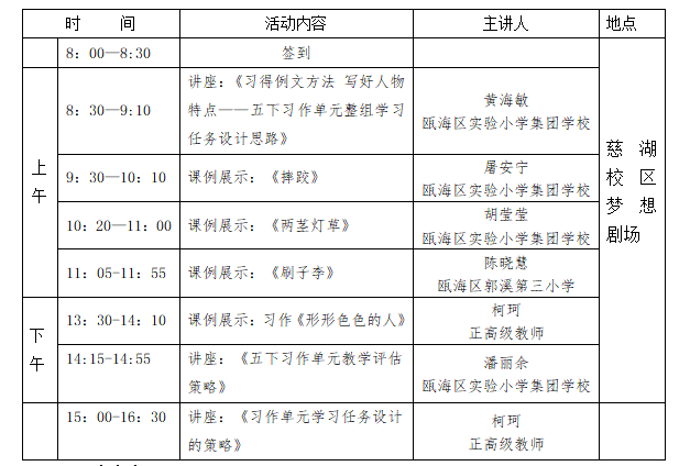 二、活动形式:单元整体教学介绍、课例展示、单元评价设计、专家讲座