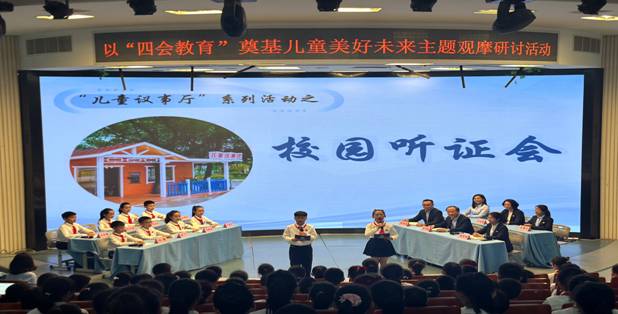 校园听证会环节更是令人耳目一新,真正体现了籀园小学以学生为主体的办学理念。学校精心组织学生听证会,主席台设学生代表席和校方代表席,现场开展“解决学校是否允许带下午点心问题”的即席听证活动。学生代表从多个角度陈述带下午点心的必要性,不断把问题抛给校方,最后圆满实现学生的愿望。本次听证会别出心裁的把五年级的学生和全体与会人员都作为本次听证会的一员,在听证环节各抒己见。与会的老师成为听证会的一员,亲身体验听证的过程,让嘉宾们印象极为深刻。