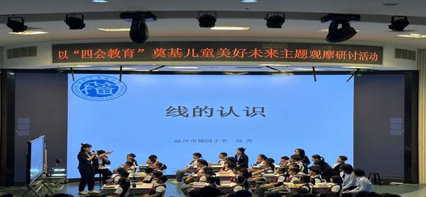 让人惊艳的是接下来的数学现场教研活动。籀园小学数学教师分三组,从三个角度对本次教学进行评价,在讨论和思辨中对课堂进行剖析提炼。研讨中找出了本堂课中不足之处,即教学“没有抓住线的本质”,从而改变思路按“点动到线”理念重新设计教案。从授课到改课再到授课,凝聚的是团队的智慧和力量,有非常多的可取、可学之处。