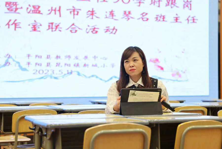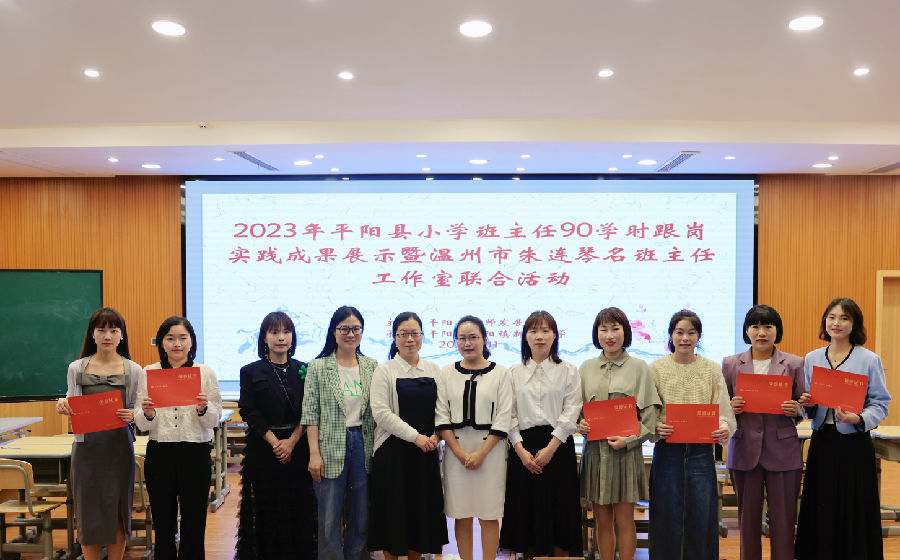 5月11日下午,县小学班主任90学时跟岗实践成果展示暨朱连琴名班主任工作室联合活动在新城小学报告厅举行。浙江省正高级教师、特级教师、温州市教师教育院班主任师训员曾容容,平阳县教师发展中心班主任研训员钟海静,温州市名班主任朱连琴,县90学时培训教育实践指导师及学员们出席了本次活动。