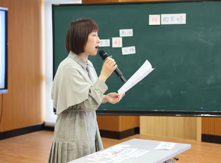 随后,新城小学陈星星、新纪元学校叶环环、实验小学林晓三位老师限时备课,同课异构,为在场老师带来了有趣生动的网络课堂。网络流行语、辨别信息、理性吃瓜、三位老师从不同的角度解构“网络文明”主题,以丰富多彩的形式落实目标,令在场老师大为赞叹。