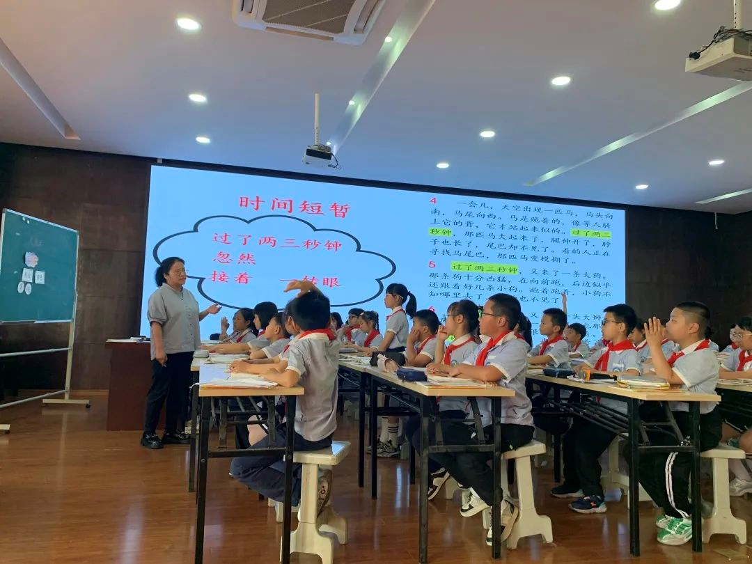 随后,由该校鲍林静和张海婷两位老师分别对《我们奇妙的世界》《海底世界》进行试课。鲍老师先借助习题梳理文脉,再通过联读迁移方法,继而回归到研读文本探秘写法,接着运用妙招修改语句,一步步引导学生感受课文语言的奇妙。张老师则带领学生回顾探秘方法,引领开启新篇;借助关键语句,迁移内化语言;从课外联读回归文本,模仿文本写法,撰写动物睡眠片段。两位老师借助课件,将自己的设计娓娓道来,无生却胜似有生。