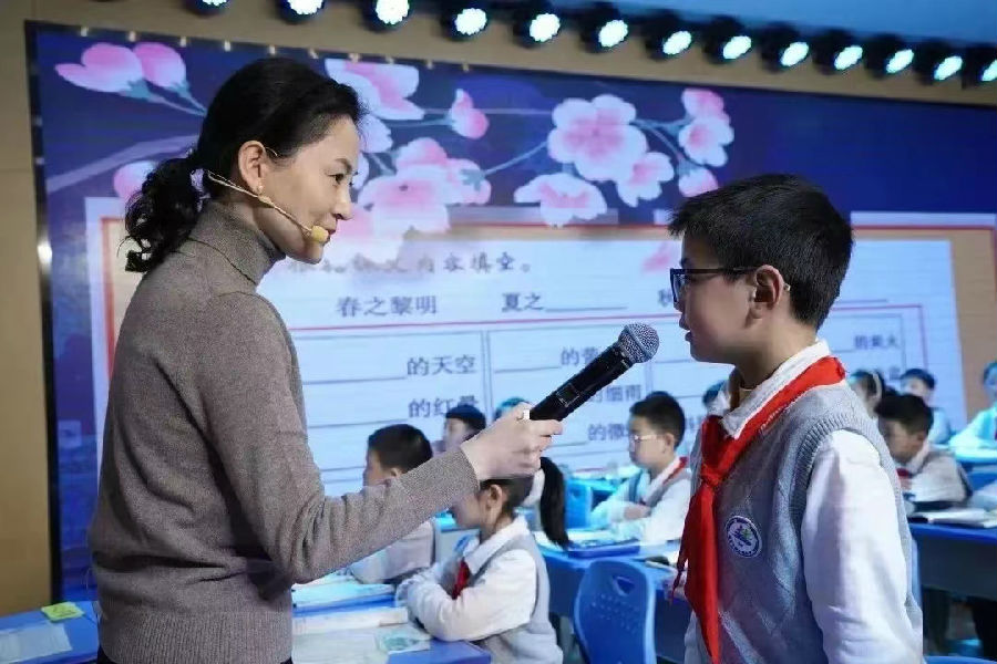 在孩子们优美的古诗句诵读中,特级教师、正高级教师周璐的课例展示《四季之美》拉开帷幕,周老师根据单元特点,创设学习情境——品读和创编“自然之趣”雅集,以任务驱动《四季之美》为何会被选入雅集中?带领孩子们借助图示图画,梳理四季独有韵味;通过赏词品句读文,体会景物动态描写;积累韵味语言,仿写景致学法迁移。周老师引导孩子们从文字中发现美,感受美,如诗如歌的课堂中,孩子们是主动的阅读者、积极的分享者、有创意的表达者。