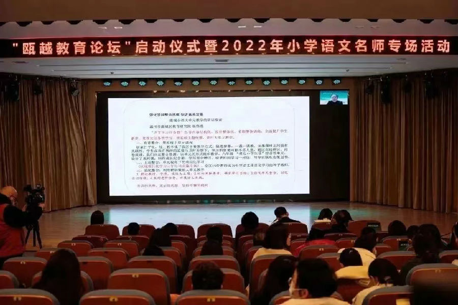 “瓯越教育论坛”分名师、名班主任、名校长三大类别进行。小学语文名师专场聚焦“学习任务群理念下的大单元教学”,小学数学名师专场聚焦“学科主题学习的教学实践”,探索如何打造基于新课改背景下的高效课堂。
