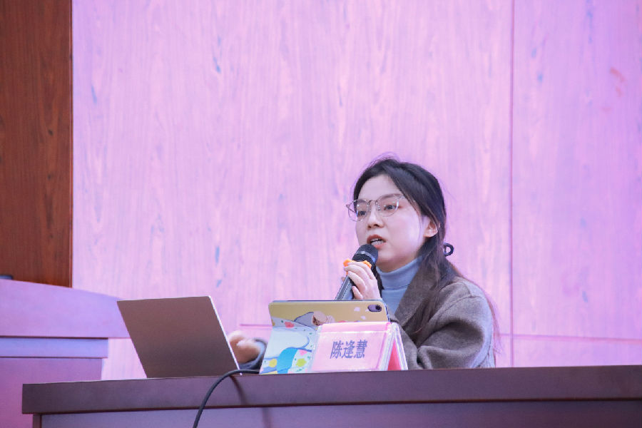 随后,温州市张合远名师工作室学员、温州湾实验学校陈逢慧老师带来精彩的分享《因“标”成“教”,依“本”而立》。陈老师从自己的研题经历说起,对照2022年版数学课程标准,以反比例函数中考试题为例,进行阐述,娓娓道来,让与会老师感同身受,受益匪浅。