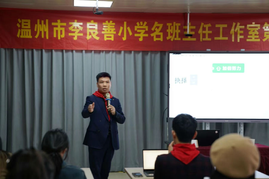 冬之美,在于继续与勃发;教之美,在于钻研与提升。为提升工作室班主任(少先队辅导员)的教育教学水平,促进班主任(少先队辅导员)之间的交流与合作,11月18日,温州市李良善小学名班主任工作室第八次活动暨温州市李良善少先队名师工作室第十二次活动在龙湾区永昌五小一楼多功能厅开展。此次活动邀请了浙江省德育特级教师、正高级教师陈建仁和温州市名班主任王惠婕进行专题讲座。