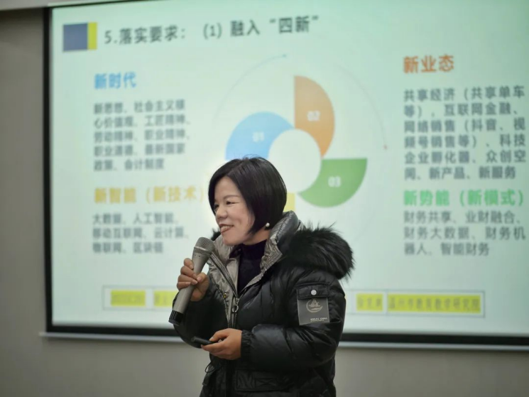 温州市名师应冬兰以《基于“4新”的中高职一体课改资源建设》为主题,围绕加快推进现代职业教育体系建设改革重点任务,关于如何开展中高职一体化课改、教学资源建设、融入“四新”新业态场景赋能中职商科常态课堂教学三方面开展交流研讨。
