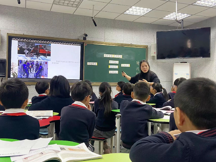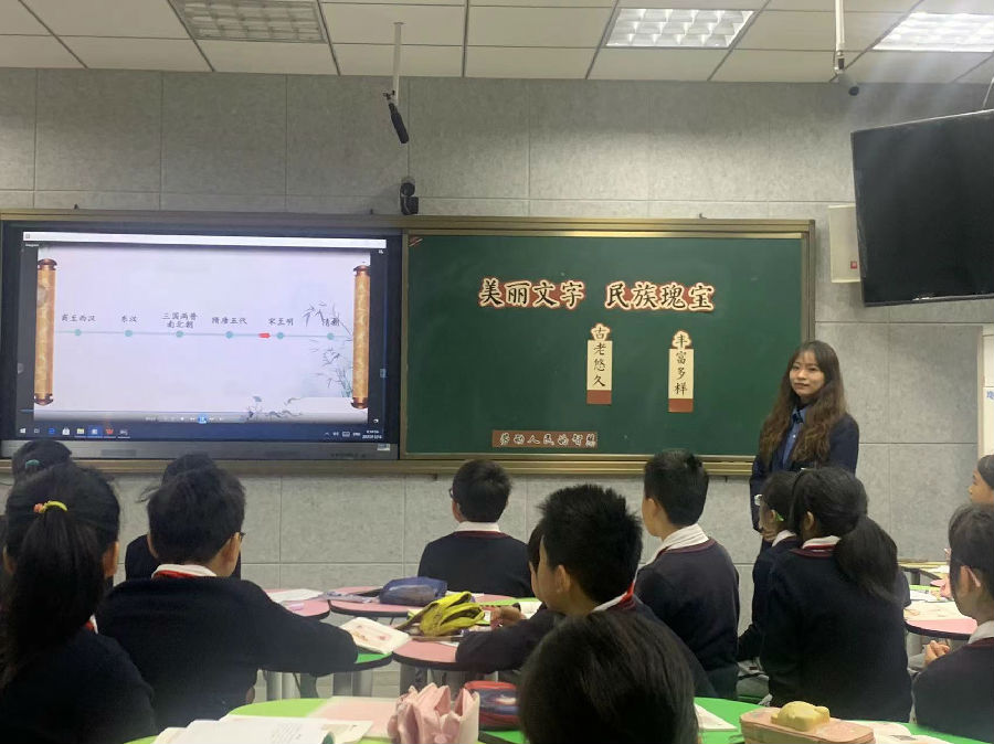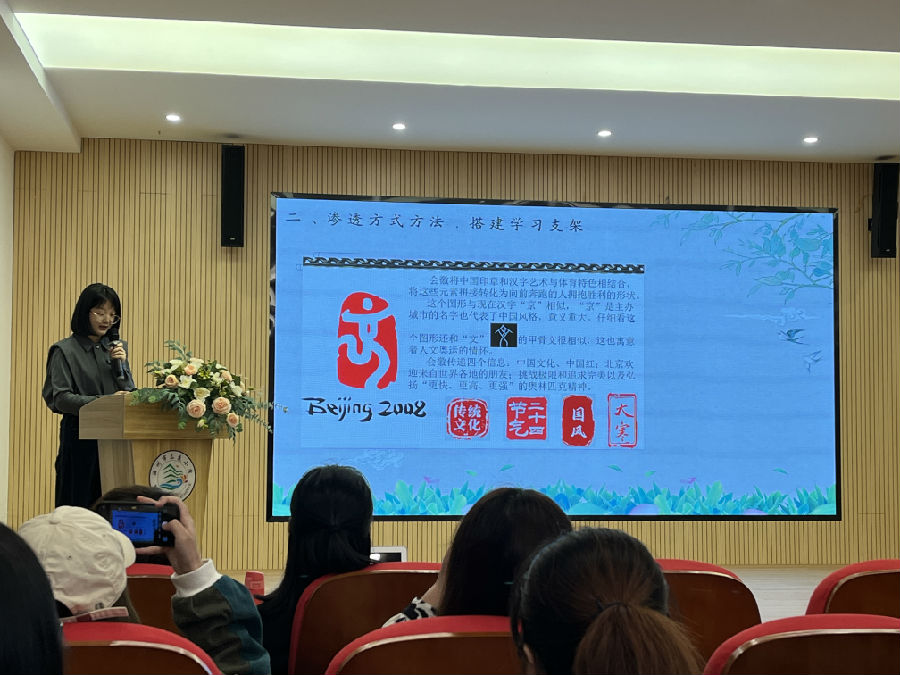 接着,温州市南浦小学的林茜老师执教的《美丽文字 民族瑰宝》从老师和学生的名字聊起,聊字形、字义以及背后的故事,初探字中的智慧。再以2008年奥运会会徽为例,引导学生通过猜一猜、找一找、想一想的方法体会会徽中汉字的意蕴隽永,学生由此深刻感受到中国汉字的影响力,激发学生民族自豪感。