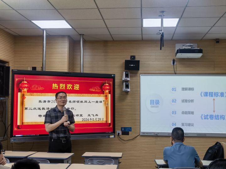 活动最后,乐清市教育研究培训院副院长、正高级、特级教师吴立建老师对王老师高度的赞赏,感谢王特的专题讲座与悉心指导,随后,做了题为《乐清市第二次中考模拟考试数学学科的质量分析》专题报告,并给中考复习提供一些指导性的意见,希望与会的教师领悟精髓,做好高效的复习教学。