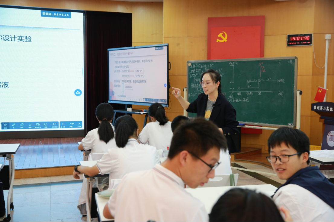 2024年10月31日,黄秀娟名师工作室第二十六次活动在温州第二高级中学举行。此次活动聚焦“情境·问题”双轮驱动的教学模式,旨在通过结合真实情境的化学教学,引导学生在探究与思考中深化对化学知识的理解,进一步推进课堂教学变革。活动由黄秀娟名师黄秀娟主持,市化学教研员方瑞光老师、黄秀娟名师工作室成员、市直高一、高二化学教师代表、温州大学化学与材料工程学院24级学科教学(化学)研究生参加了本次活动。