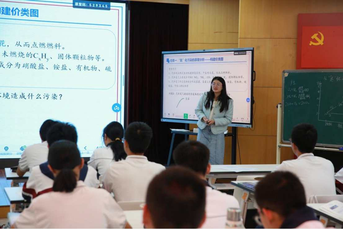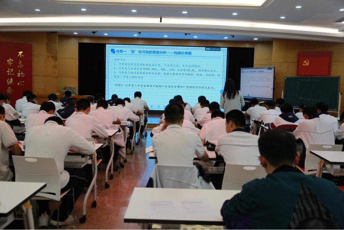 黄老师指出,“双轮驱动”教学模式融合了情境教学与问题驱动教学的优势,强调情境的真实性和问题的梯度性。在雷婷老师的氮化化学课上,她以氮化污染这一真实情境为出发点,通过提出从氮化污染成因到淡化污染的治理措施的等递进性问题,引导学生深入思考并探索解决方案。这种教学模式不仅激发了学生的学习兴趣,还促进了他们的思维发展。