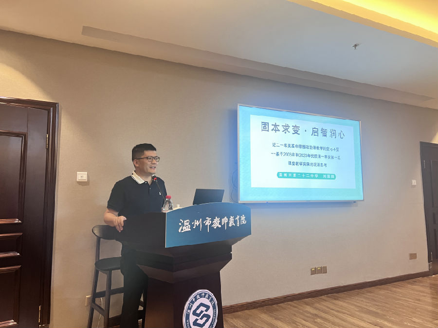 7月19日,工作室成员们带着观摩模拟政协的后劲儿,在教师教育院洞头分院继续探讨教研问题:如何将实践与教学相融合?为此,先由工作室彭静静老师、刘服园老师分别以《本固枝荣 与时俱进》和《固本求变 启智润心》为题,就新时代思政课教学的“变”与“不变”做了观课报告。以2006年路宽老师的课例与2023年俞珊老师的课例为对比,感受新时代思政课的变迁,当下思政学科对于实践与活动的重视。