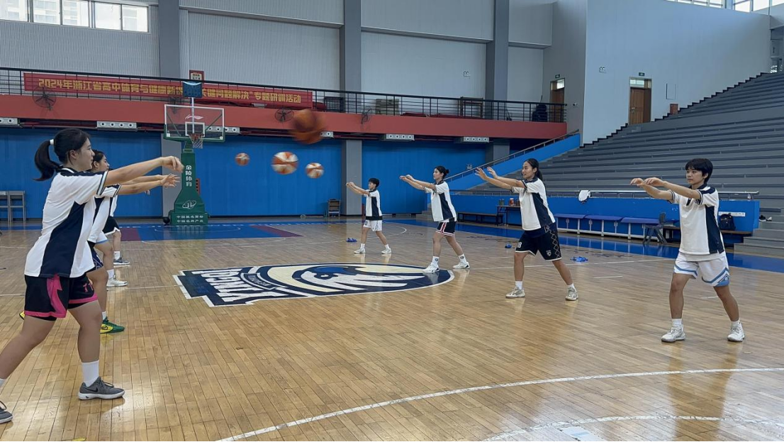 传球破空,接球稳立,10月16日的温州中学篮球馆内,一场关于篮球教学真问题的深度研讨正在火热进行。