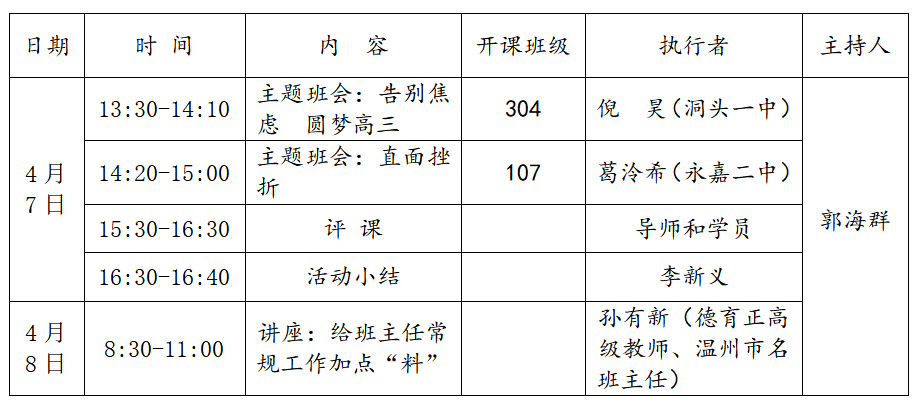 温州市 孙有新“名师送教” 工作室于 2023年04月07日 13:30:00时到2023年04月08日 11:00:00时