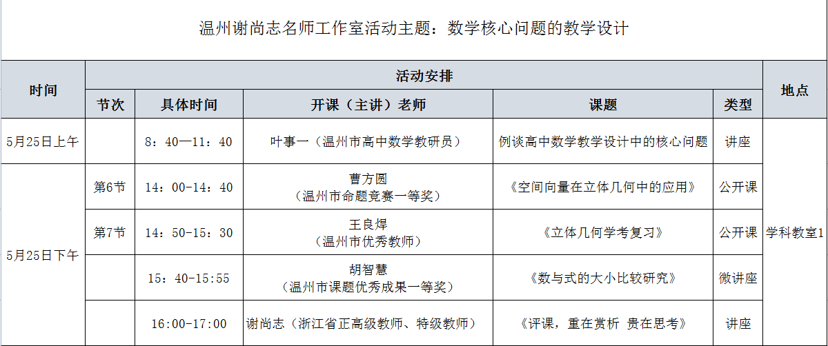 温州市 谢尚志 名师工作室于 2023年05月25日 08:00:00时到2023年05月25日 17:00:00时